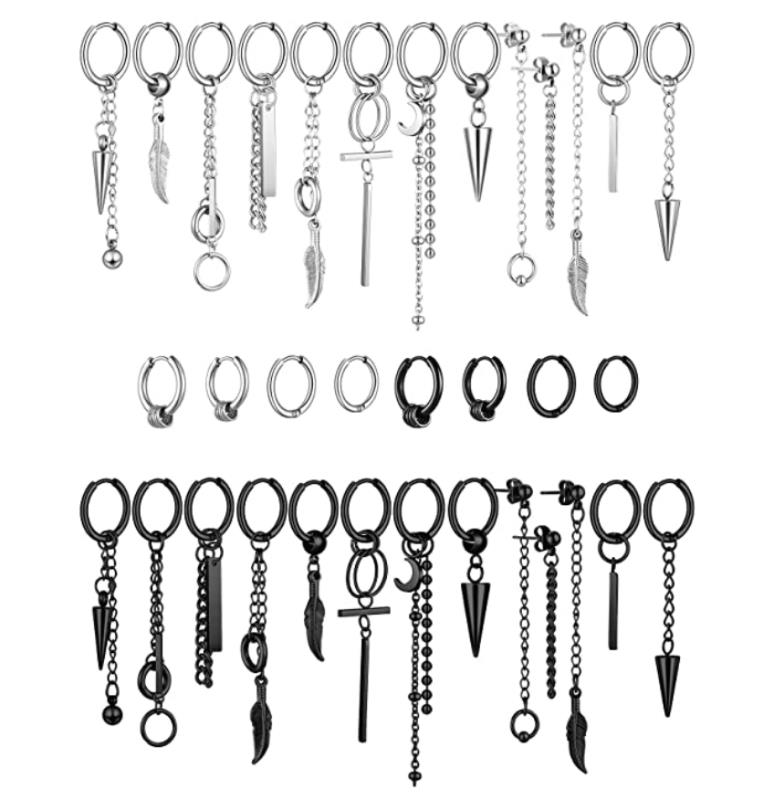 5. 34 Pieces Stainless Steel Dangle Earrings for Men