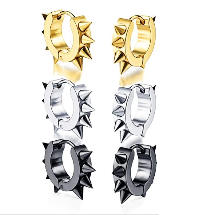 When you were a boy, did you want to be a rock punk boy? These stud earrings are punk style, with sharp studs, very cool design. You can wear only one ear to create a stylish and avant-garde look. If you are looking for something different, this earring must be your favorite. There are three colors of gold, silver and black in this suit. You can match it according to the color of your clothes.