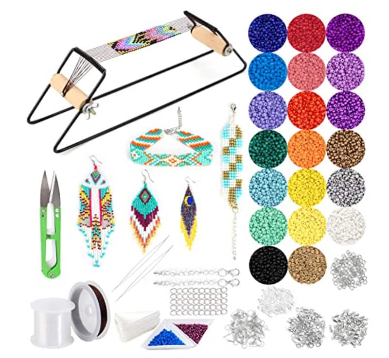If you want to begin to craft a bead bracelet, you can purchase the PP OPOUNT Adjustable Bead Loom Kit as your starter. This kit offers everything you need to kickstart your jewelry-making journey. It includes a wooden bead loom, bead trays, needles, seed beads, crystal thread, crimp ends with chains, and detailed instructions, all neatly packaged in a gift box.