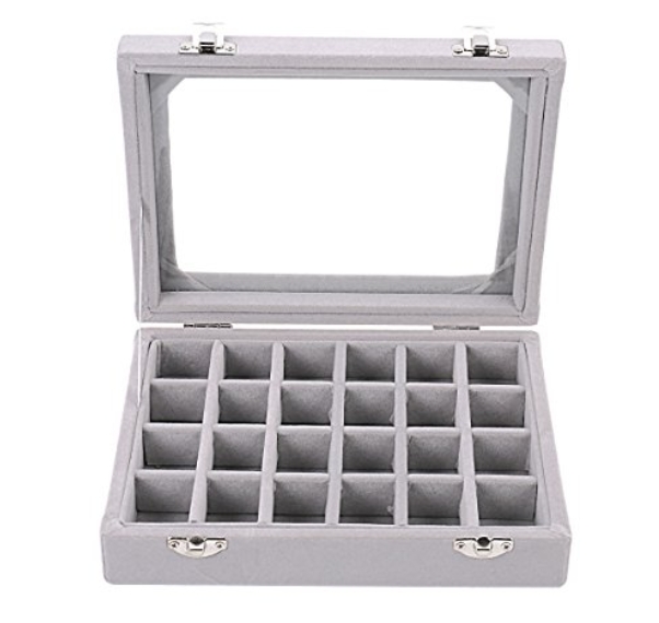 2. Store properly. When not in use, keep your bracelets in a jewelry box or a soft pouch to protect them from dust and scratches. The Ivosmart Velvet Glass Jewelry Box combines practicality and elegance with its sleek grey velvet design. Measuring 22 x 15.5 x 5cm, it features 24 compartments (3 x 3cm each), a clear glass lid, and two safety locks. Lightweight and portable, it’s perfect for storing rings, earrings, or small accessories, making it an ideal gift for any special woman.