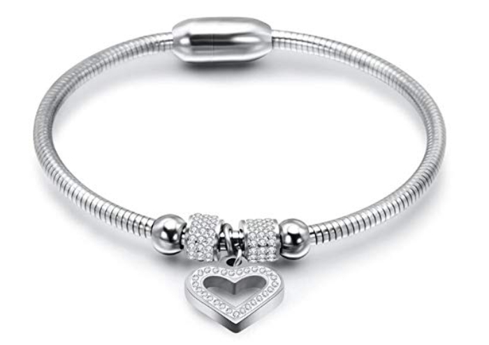 Wenn Sie ein konkretes Edelstahlarmband in Betracht ziehen, kann das Modell Jude Jewelers Stainless Steel Bangle Bracelet with Heart Charm interessant sein. Es besteht aus 316L-Edelstahl, gilt als hautfreundlich und hat einen magnetischen Verschluss für einfaches Handling. Achten Sie auf passende Größe und prüfen Sie, ob Gewicht und Schließe Ihren Tragegewohnheiten entsprechen.